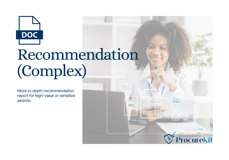 A customisable spreadsheet that lets you assign weighted scores to vendor proposals. Automatically calculates totals based on your weighting criteria, enabling quick side-by-side comparisons. Useful for multi-criteria evaluations spanning cost, quality, capability, and more.